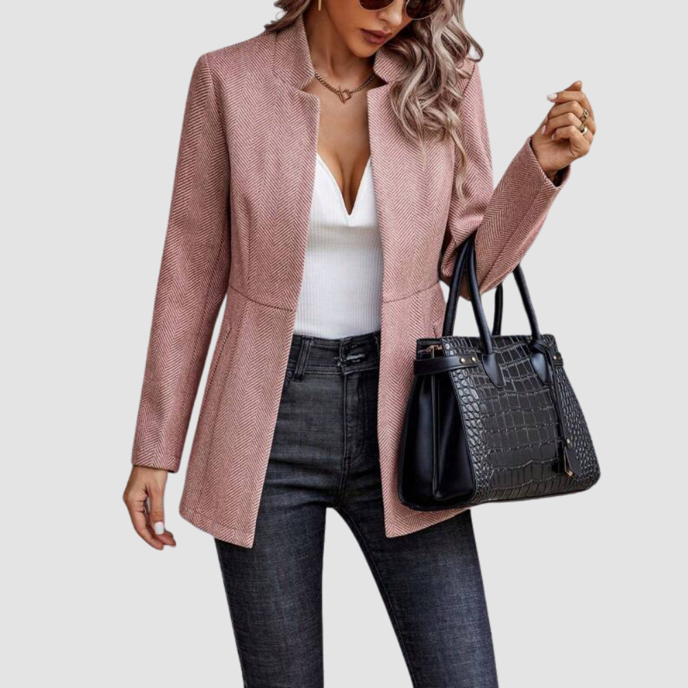 Modern Pink Plain Long-sleeved Women's Blazer Jacket
