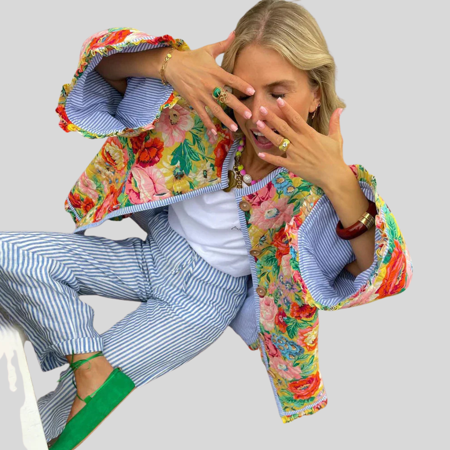 Women's Vintage-Inspired Quilted Jacket with Floral Pattern